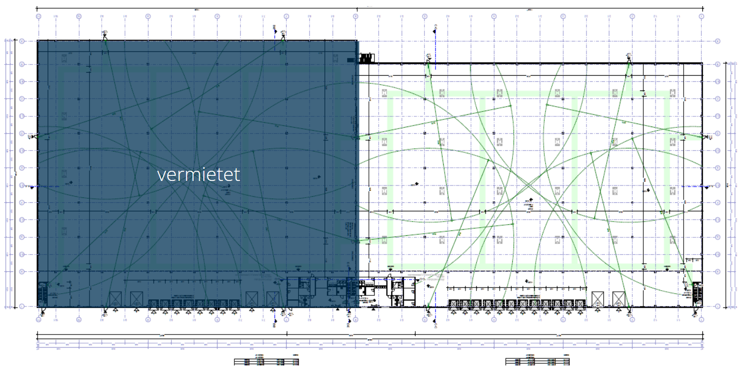 Die moderne Logistikimmobilie verfügt über eine Gesamtgrundstücksfläche von ca. 42.181 m². Die Hallenfläche umfasst rund 10.217,90 m² und wird durch ca. 1.526,40 m² Büro- und Mezzaninfläche ergänzt. Mit einer Hallenhöhe von ca. 10,05 m UKB, einer Bodenbelastbarkeit von ca. 5 t/m² sowie 12 Überladebrücken und 2 ebenerdigen Sektionaltoren ist die Immobilie optimal für Logistik- und Distributionsprozesse ausgestattet. Die technische Ausstattung umfasst eine ESFR-Deckensprinklerung, LED-Beleuchtung sowie eine nachhaltige Wärmepumpenheizung. Besonders hervorzuheben ist die DGNB Gold Zertifizierung, die die Immobilie als besonders nachhaltig und zukunftsorientiert auszeichnet.