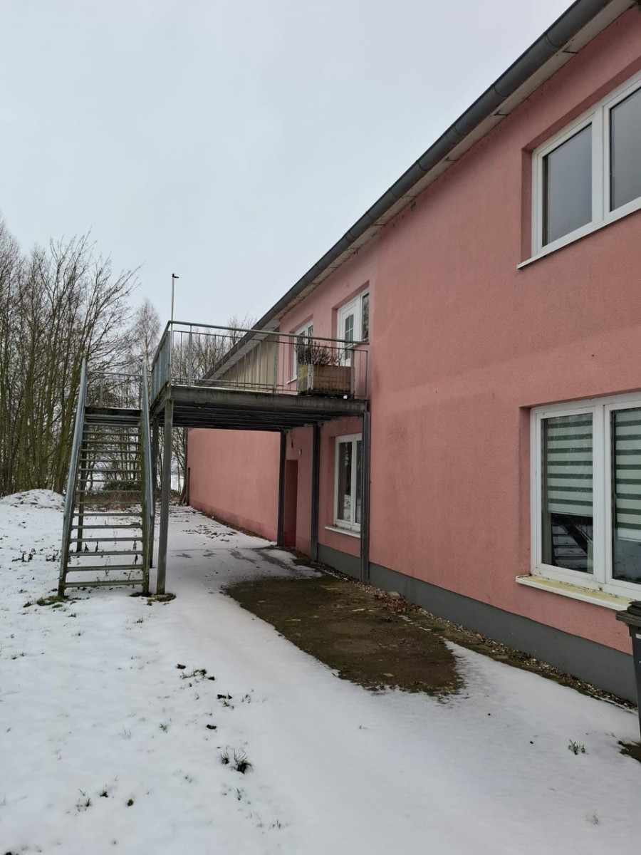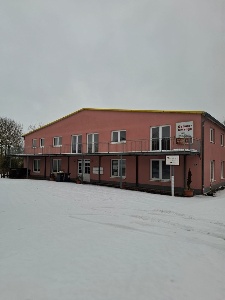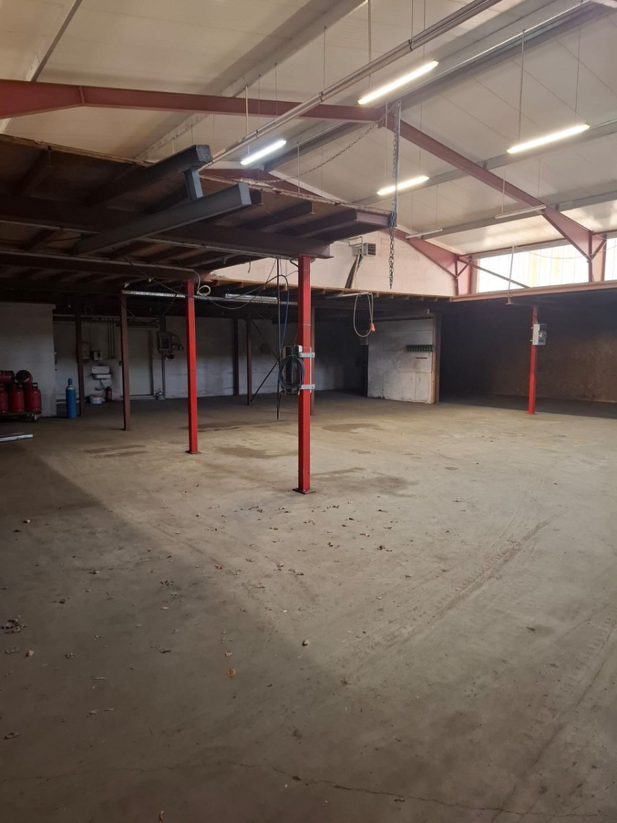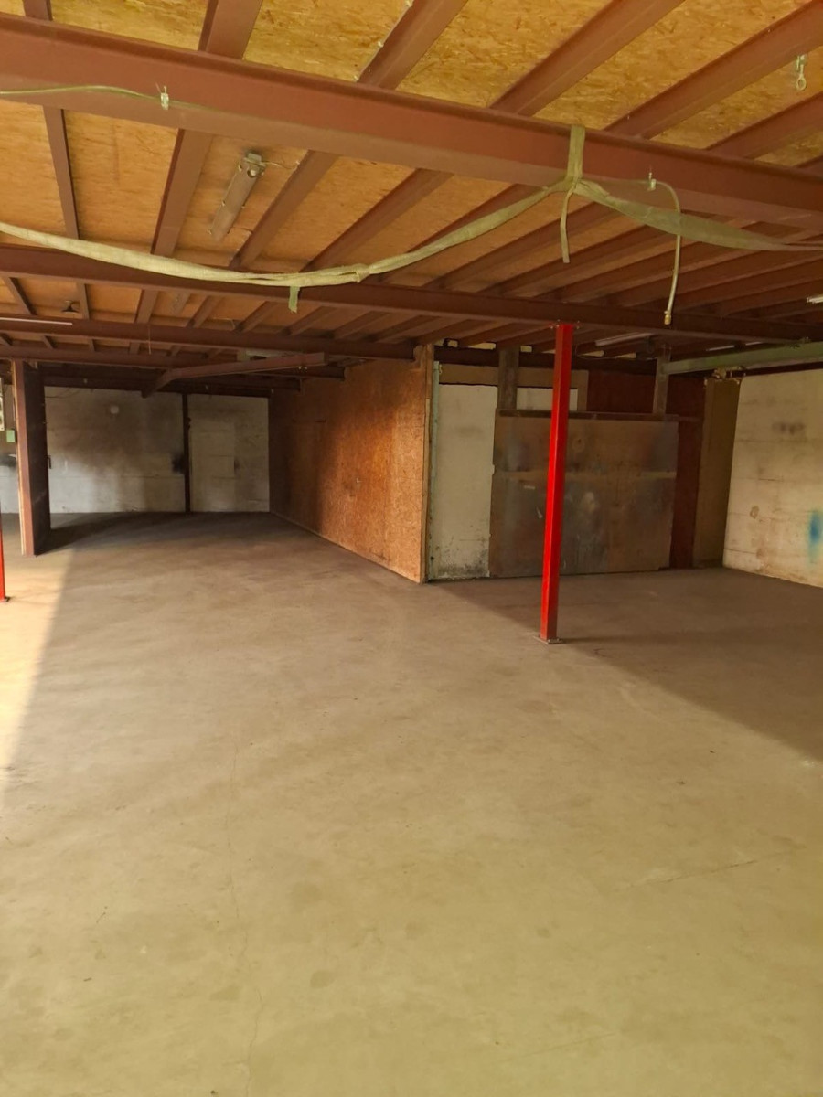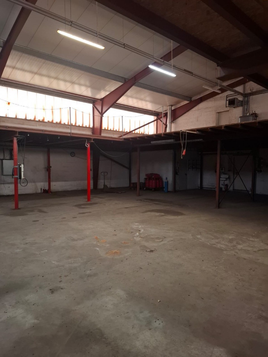 Die Halle wurde 2001 massiv gebaut, ist mit einem flach geneigten Dach erstellt und gedämmt. Der untere Hallenbereich besitzt eine Lagerfläche von insgesamt ca. 400 m². Auf einer zweiten Lagerebene, die über eine Treppe erreichbar ist, stehen ca. weitere 250 m² Lagerfläche zur Verfügung. Die gesamte Halle ist beheizbar, eine Heizung sowie Strom (230V+400V) und Beleuchtung sind vorhanden An der Westseite befindet sich ein Rolltor mit Laderampe. In die Halle wurde ein massiver Bürokomplex eingebaut, der sich über zwei Etagen erstreckt und eine Grundfläche von ca. 250m² aufweist.